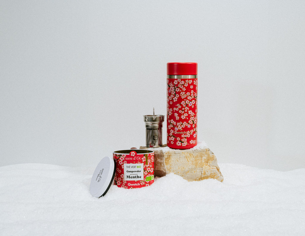 Terre d'Oc x Qwetch Gift Set Insulated Teamug Flowers Red & Organic Green Tea